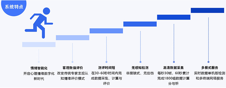 檢信ALLEMOTION多維度心理情緒測評系統開啟了心理情緒數據化新時代,為群體性人群實現高頻次的心理情緒監測提供了有效的解決方案,可以在30-60秒內完成心理情緒客觀數據的評價分析。加強高頻次的個人平時心理情緒監測,可有效掌控自身心理情緒指標的狀態,并做出相應的心理疏導與情緒放松。傳統心理量表是我們職業心理醫生輔助診斷與治療評價的工具,檢信ALLEMOTION多維度心理情緒測評系統是客觀評價個人心理情緒指數的手段,是傳統心理量表在應用上的有效補充,為我國教育、社區、部隊、企事業單位建立心理情緒健康監測及檔案管理體系提供一種有效的心理情緒檢測解決方案。